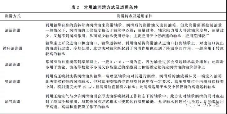 常用油潤(rùn)滑的潤(rùn)滑方式有油浴潤(rùn)滑、循環(huán)油潤(rùn)滑、滴油潤(rùn)滑、噴油潤(rùn)滑、油氣潤(rùn)滑,其潤(rùn)滑特點(diǎn)及適用條件見表2: