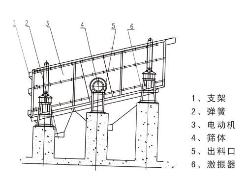 圓振動(dòng)篩主要由篩箱、篩網(wǎng)、振動(dòng)器、減振彈簧、底架、懸掛(或支承)裝置及電動(dòng)機(jī)等組成。圓振動(dòng)篩具有長(zhǎng)方形的篩面,篩面通過(guò)一定方式安裝在篩箱內(nèi),篩箱及篩面在振動(dòng)器的作用下做具有特定軌跡的往復(fù)式運(yùn)動(dòng),篩面的連續(xù)振動(dòng)使篩面上的料層不斷被拋起、松散和分離,最終達(dá)到分級(jí)或脫介的目的。圓振動(dòng)篩采用筒體式偏心軸激振器及偏心塊調(diào)節(jié)振幅,振動(dòng)器安裝在篩箱側(cè)板上,并由電動(dòng)機(jī)通過(guò)三角皮帶帶動(dòng)旋轉(zhuǎn),產(chǎn)生離心慣性力,迫使篩箱振動(dòng),篩機(jī)側(cè)板采用優(yōu)質(zhì)鋼板制作而成,側(cè)板與橫梁、激振器底座采用高強(qiáng)度螺栓或環(huán)槽鉚釘連接。