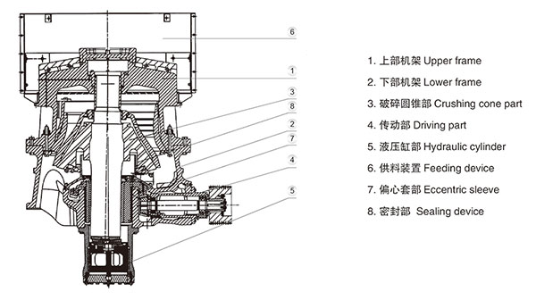 圓錐式礦山碎石機(jī):在操作過程當(dāng)中,電機(jī)通過驅(qū)動系統(tǒng)驅(qū)動偏心套操作,動錐在偏心軸套的迫動下做操作擺動,動錐挨近靜錐的區(qū)段即成為機(jī)腔,石頭獲得動錐和靜錐的多次擠壓和抨擊而破碎,動錐離開該區(qū)段時(shí),該處已破碎到要求粒度的石頭在本身重力影響下下落,從錐底排出。