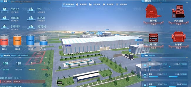 大屏實(shí)景三維展現(xiàn)整個(gè)廠區(qū),集生產(chǎn)、環(huán)保監(jiān)測(cè)、視頻監(jiān)控、礦山設(shè)備等數(shù)據(jù)進(jìn)行綜合監(jiān)測(cè)分析,對(duì)各類異常事件進(jìn)行可視化預(yù)警,促使管理者對(duì)砂石廠管理變得更加快捷高效、安全有序。