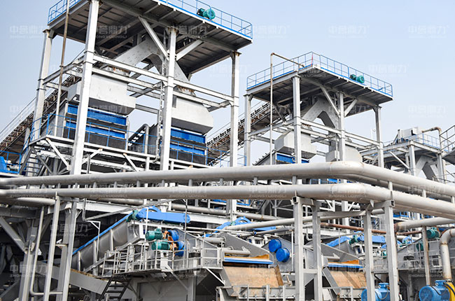 設(shè)備配置:重型板式給料機(jī)、臥式旋回破碎機(jī)、反擊式破碎機(jī)、振動篩、螺旋洗砂機(jī)、細(xì)砂回收脫水篩等制砂設(shè)備。