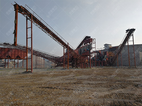先,巖石由喂料機均勻地送進碎石機進行破碎,然后,產(chǎn)成的粗骨料由皮帶運輸機運輸至反擊式破碎機進行深度破碎,整型破碎后的巖石進礦山振動篩 篩選分級出不同性能的石子,不粒度合格的石子返料進反擊式破碎機又一次破碎,大塊巖石經(jīng)料堆由振動喂料機均勻地送進顎式破碎機進行初級破碎,初級破碎后的巖石由皮帶運輸機送入反擊式破碎機進行深度破碎;整型破碎后的巖石由皮帶運輸機送進礦山振動篩 進行篩選分級,篩選分級出多種不同性能的石子,粒度合格的石子由成品皮帶運輸機送往砂石堆;不粒度合格的石子由皮帶運輸機返料送入反擊式破碎機進行又一次破碎,形成閉路多次循環(huán),成品粒度可根據(jù)用戶的需要進行組合和分級,為保護環(huán)境,可搭配輔助的除塵機械,