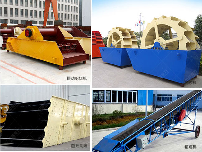 機制砂生產線整套設備配置包含:喂料機、pe顎式破碎機、重型錘破機、礦用振蕩篩 、碎砂機、礦用振蕩篩、砂石洗選設備 及運輸防塵等設備。